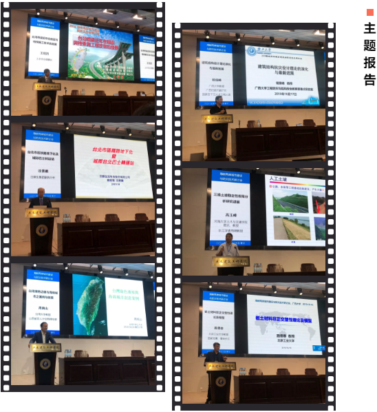 會(huì)議圍繞“海峽兩岸城市建設(shè)與防災(zāi)技術(shù)”為主題展開(kāi)研討,臺(tái)灣土木水利工程學(xué)會(huì)王炤烈理事長(zhǎng)、臺(tái)灣日勝生集團(tuán)沈景鵬副執(zhí)行長(zhǎng)、臺(tái)灣大學(xué)周南山教授,廣西住建廳副廳長(zhǎng)、廣西大學(xué)楊綠峰教授,河海大學(xué)土木與交通學(xué)院院長(zhǎng)高玉峰教授,北京工業(yè)大學(xué)路德春教授等海峽兩岸城市建設(shè)與防災(zāi)技術(shù)領(lǐng)域的專家和學(xué)者先后就各自在城市土木工程建設(shè)與防災(zāi)技術(shù)、理論方面的最新研究成果作了精彩的主題報(bào)告,主題報(bào)告環(huán)節(jié)由臺(tái)灣土水學(xué)會(huì)主任委員林其璋教授和廣西大學(xué)土木建筑工程學(xué)院院長(zhǎng)梅國(guó)雄教授主持。