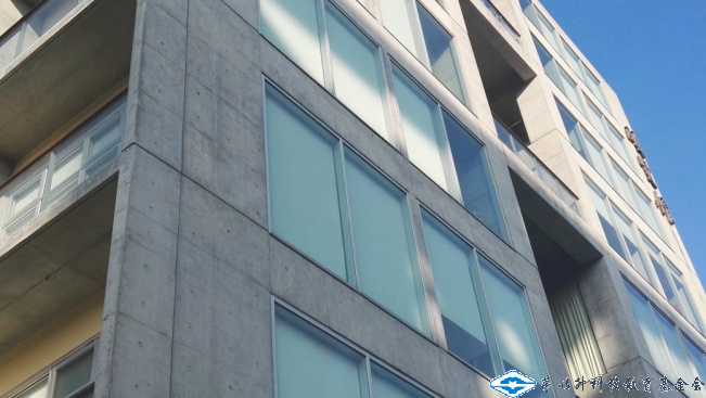 為了解臺灣地區(qū)綠色建筑及綠色建造技術(shù),訪問團現(xiàn)場參觀了臺灣大學政治學院教學樓,這是一棟清水混凝土建筑,混凝土一次澆注成型,不做任何外裝飾,直接采用現(xiàn)澆混凝土的自然表面效果作為飾面。該棟建筑表面平整光滑、色澤均勻、棱角分明、無碰損和污染,顯得十分天然,莊重。整棟建筑的裝飾簡潔、明快,減少大量裝飾材料的使用,縮短了工期,也節(jié)約了大量勞動力,符合國內(nèi)綠色建造的理念。